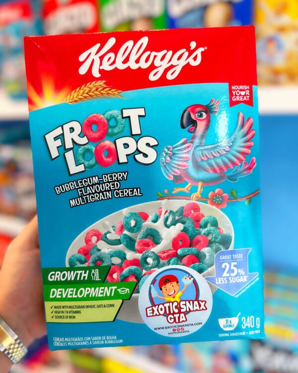 Bubblegum berry flavoured Froot Loops cereal. Straight from South Africa! Available @ Exotic Snax GTA!